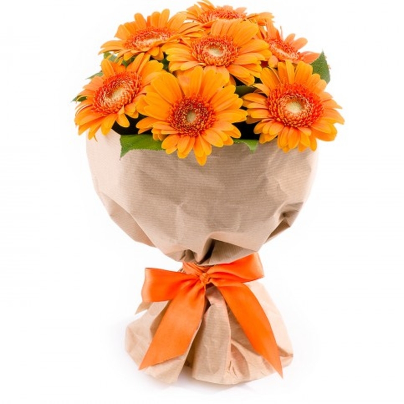 Букет из 7 оранжевых гербер в крафте