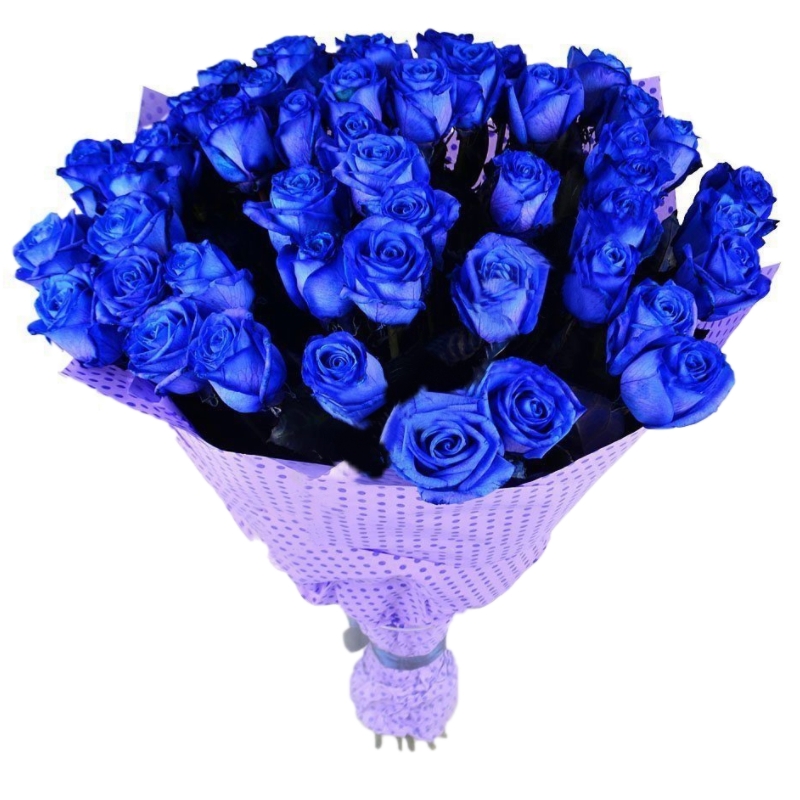Букет состоит из 51 синяя роза, красивая упаковка, атласная лента.