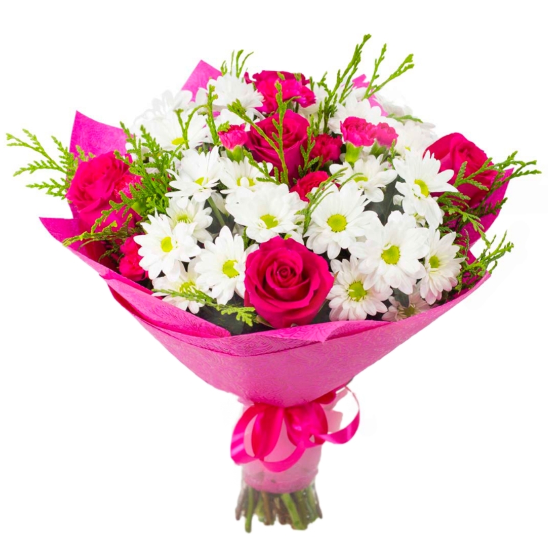 Букет сборный из роз и хризантем "Скромница"